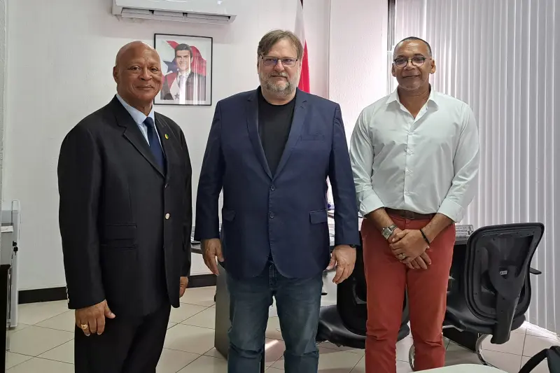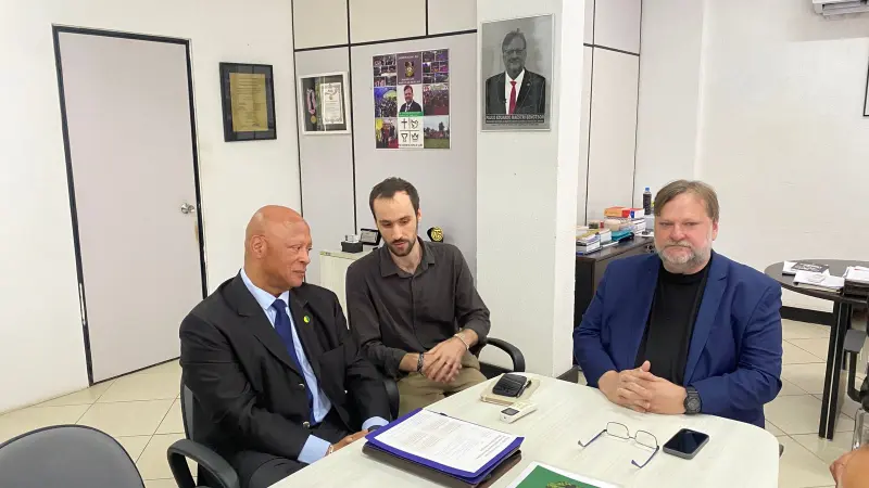 A Secretaria de Desenvolvimento Econômico, Mineração e Energia (Sedeme), representada pelo titular da pasta, Paulo Bengtson, deu mais um passo rumo ao fortalecimento das relações bilaterais ao receber, na tarde de segunda-feira (20), o vice-presidente da Coletividade Territorial da Guiana Francesa (CTG) e o delegado ao Desenvolvimento Econômico, Jean-Luk Lewest. A reunião foi conduzida pelo secretário e contou com a presença do representante permanente da CTG no Pará, Christian Haridas, de membros da comitiva diplomática, do diretor de Energia da Sedeme, Mauro Bastos e do assessor Leonardo Lobato.