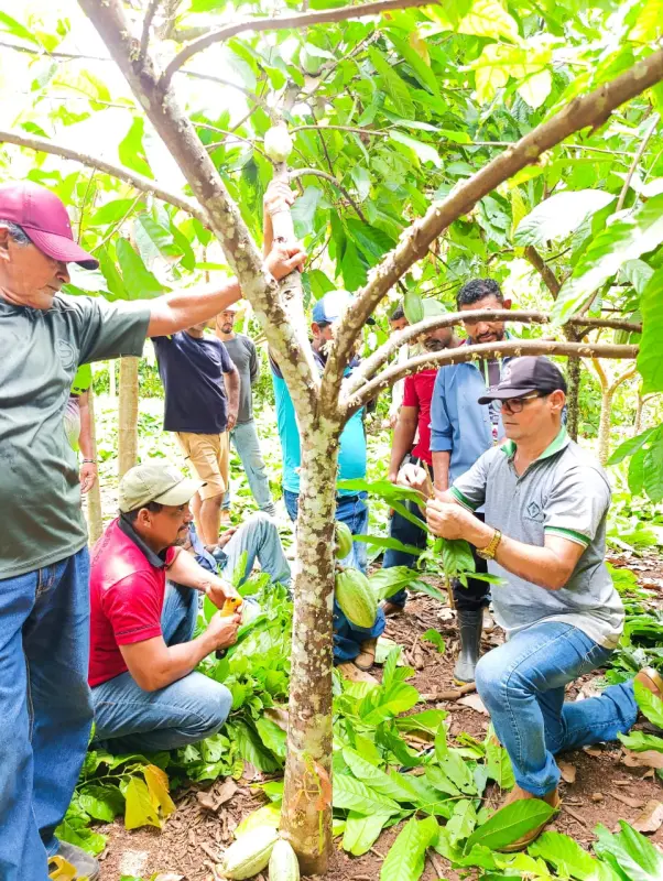 A capacitação, no Sítio Guajará, do agricultor Waldecir Barbosa, na comunidade Bom Jesus do Guajará, atualizou, em caráter científico, as teorias e práticas quanto ao plantio de cacau. “Existem vários tipos de poda: poda de formação, poda de compulsão, limpeza e rebaixamento. Todas essas podas são essenciais ao cacau, desde a formação, para se estruturar a planta. Você consegue fazer a planta ficar da forma que você quer, da forma que é necessária, até a poda de condução, que é conduzir a altura, espaço, e tem a poda de produção: a poda de produção todo ano deve ser feita - seja ela mais drástica, seja ela mais suave. Sem poda, a produção de cacau é baixa. A poda incentiva a planta a produzir e a reproduzir, pelo mecanismo de estresse”, resume Pereira.