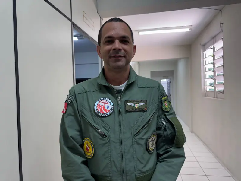 “O Dia do Aviador é importante e nele a gente pode refletir sobre o desafio que é a carreira de aviador. Eu tenho aqui cinco anos de grupamento e, mesmo o com todo esse tempo de piloto, exercendo a função, a cada voo é um desafio e, como foi falado por outros colegas, o nosso voo começa no dia anterior à missão que a gente vai executar, com todo um planejamento, toda uma análise, recorrer aos meios de informação disponíveis para que a gente possa fazer com que o nosso voo tenha a maior segurança, tanto para a nossa vida quanto para aqueles passageiros que a gente transporta. O Estado tem se preocupado também em poder garantir um voo seguro na medida em que a gente tem bons equipamentos, bons aviões. Recentemente, a gente adquiriu um simulador e também constantemente a gente está treinando a fim de que a nossa missão possa ser executada com êxito e com sucesso”, observou o oficial, Esdra Lemos