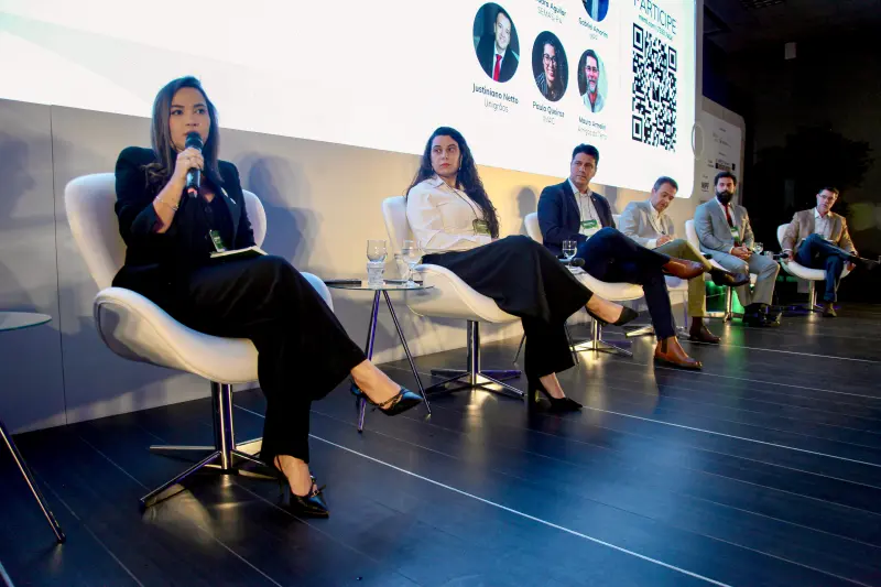 A diretora de Mudanças Climáticas da Semas, Indara Aguilar, representou o Estado no painel “Reinserção produtiva: Caminhos para a regularização socioambiental e econômica na pecuária”, ao lado de João Paulo Franco, coordenador de Produção Animal da Confederação da Agricultura e Pecuária do Brasil (CNA); Gabriel Amorim, procurador do Ministério Público Federal (MPF); Justiniano Netto, presidente da Unigrãos; Paula Queiroz (Instituto Mato-Grossense da Carne - IMAC) e Mauro Armelin, diretor executivo da Amigos da Terra.