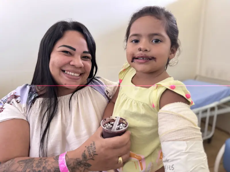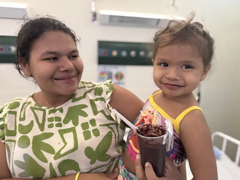 Pediatria - A ação também encantou os acompanhantes e pacientes pediátricos. Amanda Santos, 23 anos, mãe de Mirela Santos, 2 anos, contou que a filha ficou animada ao receber o alimento com o almoço. “A Mirela ficou toda feliz. Ela adora açaí e foi muito bonito ver a alegria dela aqui dentro do hospital”, disse a mãe.