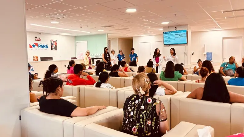 'Cuidar de si' - Durante a semana, pacientes da unidade receberam orientações sobre o autoexame das mamas, em ações conduzidas pela equipe médica e multiprofissional. Em parceria com a Fundação ParáPaz, foi promovida a palestra “Mulheres que cuidam de todos, mas precisam cuidar de si”, que reforçou o trabalho da rede de proteção às mulheres e a importância da prevenção e da educação em saúde, especialmente entre mulheres em situação de vulnerabilidade ou violência.