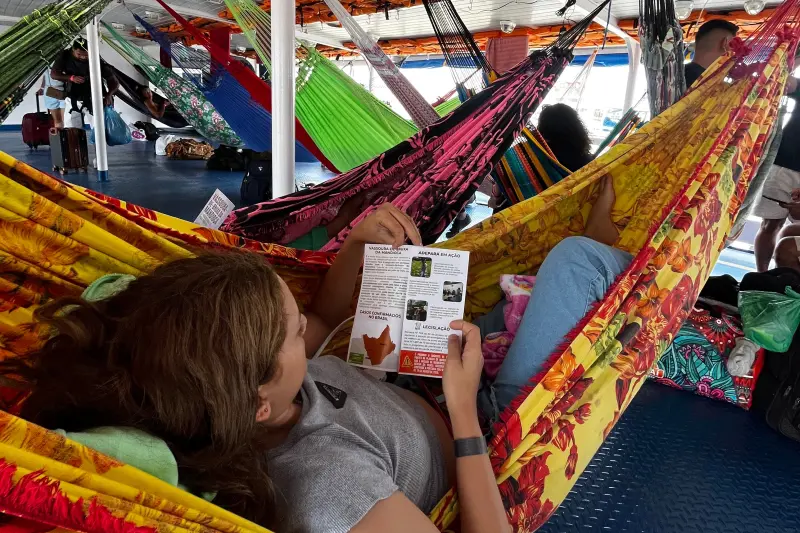 Em Belém, as equipes da Adepará visitaram portos e embarcações com destino ao Amapá. No navio Ana Beatriz, que transporta cerca de 700 passageiros, fiscais agropecuários distribuíram materiais informativos e utilizaram o sistema de som da embarcação para explicar os sintomas e formas de prevenção da doença.