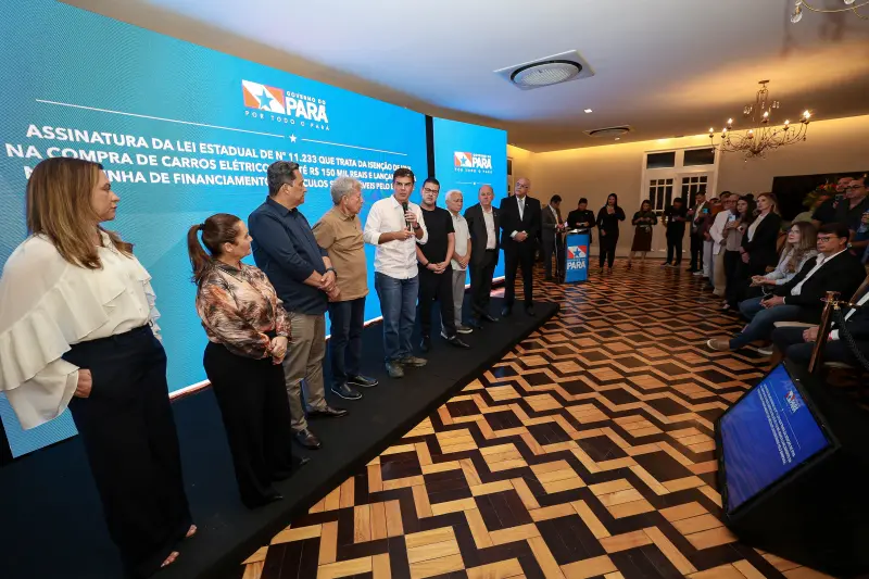 "Nós estamos incentivando o consumo e a compra de carros elétricos no Estado do Pará. Hoje, sancionamos a lei que faz com que todos os carros de até R$ 150 mil sejam isentos de IPVA. E as motos de até 200 cilindradas também terão isenção de impostos. Com isso, nós estimulamos que as pessoas possam renovar, possam ter condição, principalmente lembrando que para ter a isenção, não pode ter infração na carteira. Além disso, nós estamos reduzindo o imposto veicular para carros alugados, para carros de locadoras, para que possamos estimular que essas locadoras comprem carros no Estado e, também, coloquem a placa aqui no Pará", disse o governador do Pará.