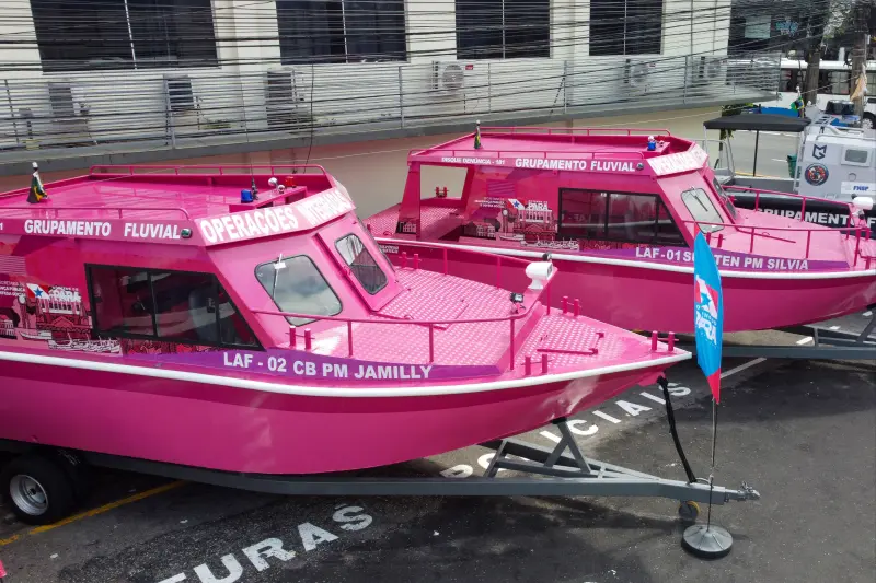 Durante a agenda, também foram entregues duas lanchas rosas, as primeiras no Brasil, voltadas exclusivamente para atendimentos relacionados à violência contra a mulher.