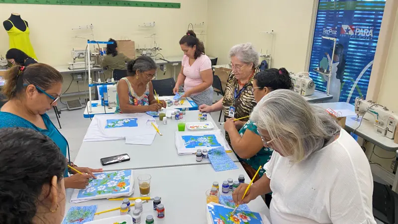 “Esses cursos foram recomendados como uma forma de terapia. Mas a gente acaba enxergando além: surgem possibilidades de empreender. Aqui mesmo, lembrei do eco bag, que aprendi a confeccionar na aula de corte e costura — dá para pintar na lona e transformar em uma bolsa ecológica. A gente vem por um motivo e acaba descobrindo um horizonte de oportunidades para empreender”, afirma Nazaré.