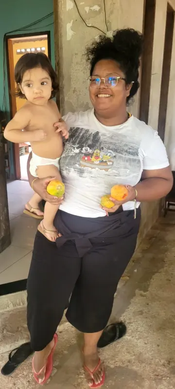 “Era dos meus avós paternos, agora minha mãe mora nela; todos nós, da família, frequentamos desde sempre; eu tomo banho de chuva com meus sobrinhos crianças. É um lugar com açaizeiro, jaqueira, limoeiro, bananeira, ingazeiro, pé de pupunha. Minha mãe já tem plantas medicinais. Plantar mais hortaliças vai enriquecer a paisagem, melhorar nossa alimentação, intensificar a solidariedade com a vizinhança, e aqui os vizinhos a maioria é parente. É um privilégio todo este contato com a natureza”, relata a técnica de design de interiores Thaynana Cilene Andrade, de 24 anos.