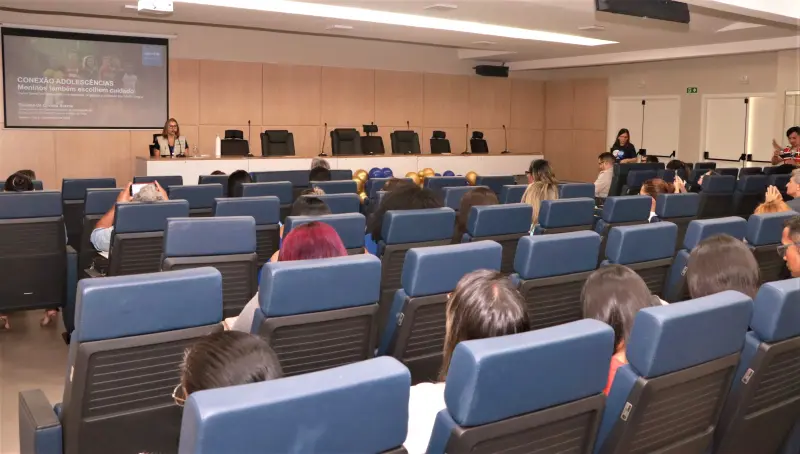 A especialista Thaíssa Scerne, especialista em Desenvolvimento e Participação de Adolescentes no Unicef (Fundo das Nações Unidas para a Infância), falou sobre “Exemplos que inspiram – Projeto Conexão Adolescência”. Para o seminário, a Sespa contou com a parceria da referência técnica de saúde do homem da Secretaria de Saúde de Belém (Sesma), representada pela psicóloga Maísa Gomes.