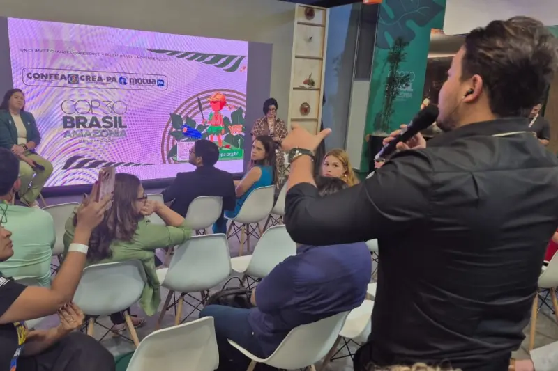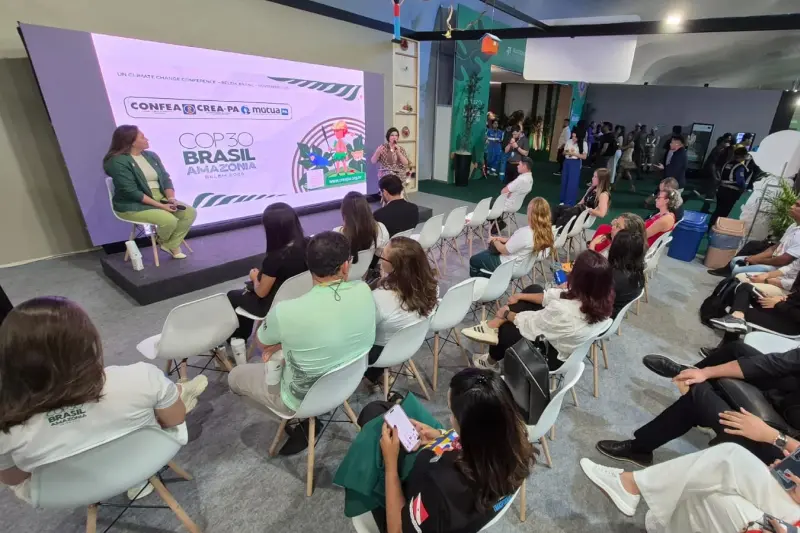 O debate foi realizado no estande do Conselho Regional de Engenharia e Agronomia do Pará (Crea-PA) com participação da engenheira sanitarista, Tatiana Costa, da Cosanpa; do major Marcelo Pinheiro, da Divisão de Operações da Coordenadoria Estadual de Defesa Civil do Pará; e da presidente do Crea do Rio Grande Sul, Nanci Walter; que falou sobre a importância dos profissionais de engenharia na reconstrução das cidades gaúchas atingidas pelas chuvas e alagamentos em 2024.
