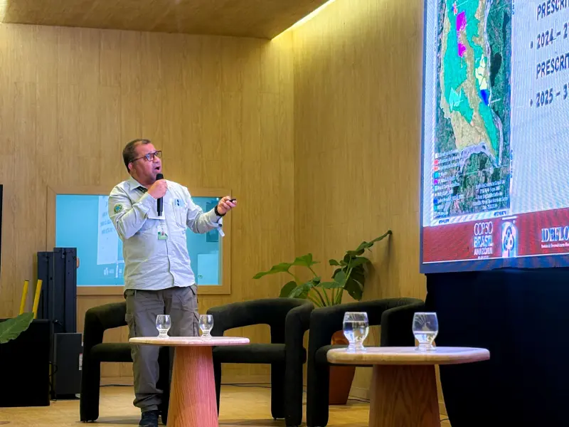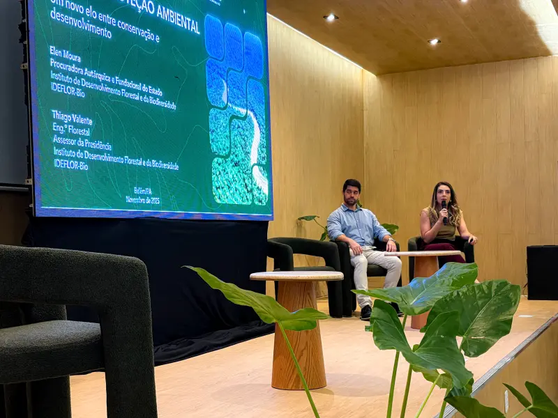 “O Ideflor-Bio traz nesse evento paralelo à COP30 os resultados dos trabalhos que vêm sendo desenvolvidos há muito tempo para a sociedade. E esses trabalhos demonstram que o Governo do Pará, por meio do Instituto, vem desenvolvendo uma agenda ambiental intensa para mitigar as mudanças climáticas”, enfatizou Thiago Valente.