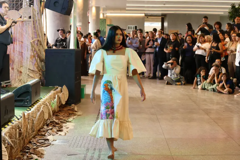 O Pavilhão Pará, na Green Zone da COP30, recebeu, na tarde da terça-feira (11), o desfile “Amazônia Resistência: um desfile em movimento”. A iniciativa, promovida pelo Governo do Pará, por meio das secretarias de Estado de Administração Penitenciária (Seap) e de Cultura (Secult), apresentou a coleção "Ya Temi Xoa – Ainda estou vivo", parceria criativa do estilista Dan Delacosta e 22 mulheres da Cooperativa Social de Trabalho Arte Feminina Empreendedora (Coostafe), formada por internas do sistema penitenciário paraense.