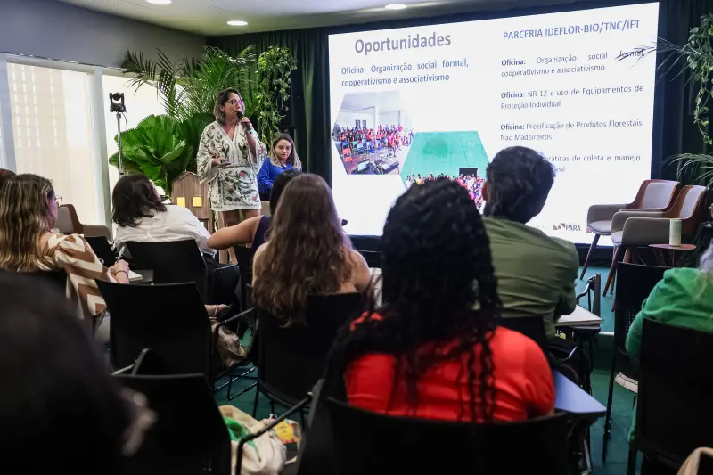 A iniciativa apresentada na conferência é desenvolvida na Flota do Paru, no Oeste paraense, e propõe um modelo colaborativo em que o uso da floresta é compartilhado entre diferentes atores - empresas concessionárias de manejo madeireiro e comunidades locais que vivem do extrativismo. A proposta reforça o papel do Estado na promoção de práticas sustentáveis que conciliam geração de renda e conservação ambiental.