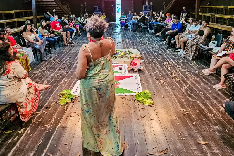 Entre os participantes, estava a diplomata Sanny Araújo, que está em Belém para atividades relacionadas à COP30 e decidiu participar da oficina por indicação de amigos. Ela ressaltou o impacto emocional e cultural da experiência. “Fiquei impressionada com a pluralidade do encontro, com a forma aberta e acolhedora com que os povos tratam uns aos outros. Quando eles nos chamam de ‘parente’, isso toca profundamente - é um gesto que faz a gente se sentir parte de um mesmo povo, mesmo na diversidade. Saio daqui com vontade de voltar outras vezes”, contou.