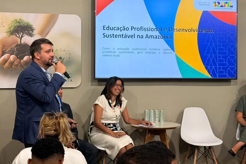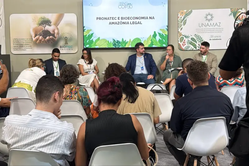 O encontro ocorreu no estande da Associação de Universidades Amazônicas (Unamaz), localizado na Zona Verde da COP30, em Belém. O painel reuniu representantes do governo, de universidades e de instituições de ensino técnico para discutir os impactos, desafios e perspectivas da educação profissional voltada à bioeconomia na Amazônia.