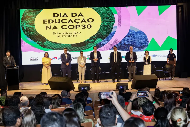 Durante a programação da 30ª Conferência das Nações Unidas sobre Mudanças Climáticas (COP30), em Belém, a Secretaria de Estado de Educação (Seduc), em parceria com o Instituto Alana, promoveu nesta quarta-feira (12) um evento alusivo ao Dia da Educação, com foco na inserção da pauta climática nas políticas pedagógicas.