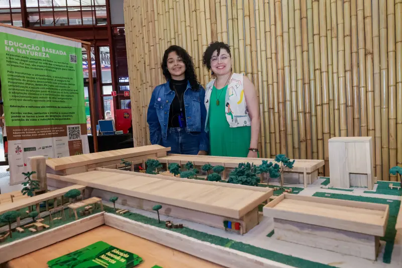 Durante o evento, foi apresentado o projeto “Pátios Escolares Resilientes e Naturalizados”, desenvolvido pela Escola Estadual Jarbas Passarinho, em parceria com o Instituto Alana. A proposta busca repensar os espaços abertos da escola, tornando-os mais integrados à natureza e ao bem-estar dos estudantes.