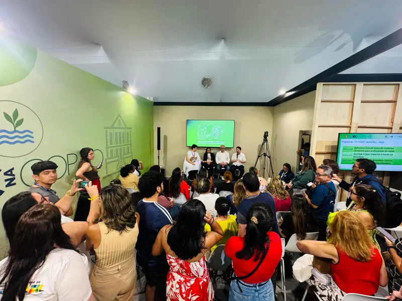 Políticas de saúde voltadas à realidade amazônica foram tema do painel “Amazônia que cuida, transforma e ensina”, promovido pelo Instituto Evandro Chagas (IEC), nesta quarta-feira (12), na Zona Verde da Conferência das Nações Unidas sobre Mudanças Climáticas (COP30). O objetivo do encontro foi evidenciar como o investimento em pessoas — trabalhadores, estudantes e comunidades — garante o cuidado em saúde e a sustentabilidade na região.