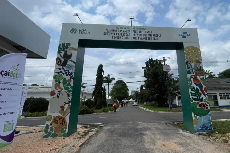 Entrada da Agrizone, espaço voltado para apresentar o papel da agropecuária às mudanças climáticas, e que foi o local onde a Sedap firmou o acordo