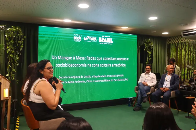 Durante o painel realizado na quarta-feira (12), no Pavilhão Pará da COP30, o secretário adjunto de Gestão e Regularidade Ambiental da Semas, Rodolpho Zahluht Bastos, destacou o papel do manguezal e das comunidades costeiras na construção de um novo modelo de desenvolvimento sustentável e inclusivo no Pará.