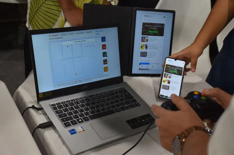 O primeiro projeto apresentado foi o "EcoClay", desenvolvido por estudantes do curso técnico em Meio Ambiente. O aplicativo gamificado ensina o manejo adequado de resíduos sólidos e orgânicos, de forma dinâmica e acessível. Criado especialmente para alunos do Ensino Fundamental, alia tecnologia, educação e ludicidade, permitindo que crianças e adolescentes aprendam jogando, enquanto absorvem conceitos essenciais de sustentabilidade.