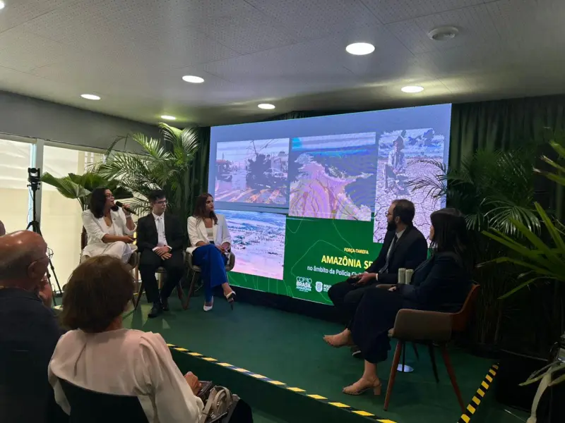 Atuação contínua - Os participantes do painel incluíram o delegado Iuri Castro e o investigador Sandrison Ribeiro, que abordaram a Força-tarefa Amazônia Segura, vinculada à “Operação Curupira”, voltada para o combate e desarticulação de crimes ambientais como desmatamento e garimpo ilegal na região amazônica. O momento também abordou o êxito da operação “Triunfo da Amazônia”, deflagrada em 2023, que prendeu um homem apontado como o maior devastador da Área de Proteção Ambiental (APA) Triunfo do Xingu, situada no município de São Félix do Xingu.