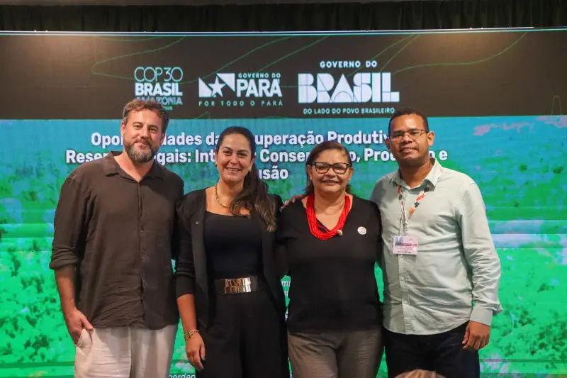 O painel “Oportunidades da Recuperação Produtiva de Reservas Legais: integrar conservação, produção e inclusão”, realizado na sexta-feira (14), na Sala Castanheira do Pavilhão Pará na COP30, reuniu especialistas, produtores e representantes de instituições públicas e privadas. A discussão apontou caminhos para transformar áreas degradadas em sistemas produtivos diversificados, ampliando renda, fortalecendo a agricultura familiar e recuperando a floresta.