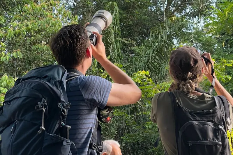 Pluralidade - A diversidade do público chamou atenção. Havia gaúchos, mato-grossenses, paulistas, norte-americanos, neozelandeses, belgas, paraenses e muitas outras origens. Entre iniciantes e observadores experientes, o passarinhar mostrou, mais uma vez, sua força como ferramenta de turismo regenerativo, capaz de movimentar a economia, gerar renda e criar novas relações com a floresta. O clima era de acolhimento e descoberta, com pessoas de todas as idades caminhando lado a lado, unidas pela curiosidade e pelo cuidado com a natureza.