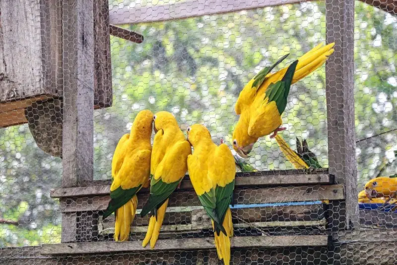 A chegada das ararajubas ao Pará abre a fase mais delicada do processo: a aclimatação. Durante quatro a seis meses, as aves permanecem em um viveiro especial instalado no Parque Estadual do Utinga Camillo Vianna, em Belém, onde passam por avaliações de saúde, socialização e treinamentos que vão prepará-las para enfrentar os desafios da vida livre. A dieta também muda: frutas amazônicas, como açaí, murici e uxi, passam a ser oferecidas, para que os animais reconheçam alimentos típicos de seu habitat.