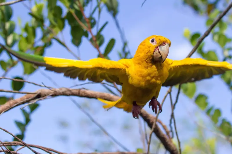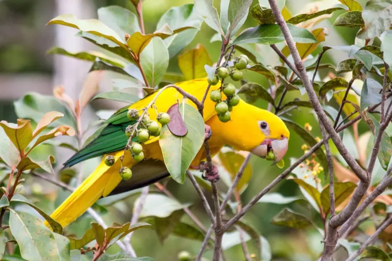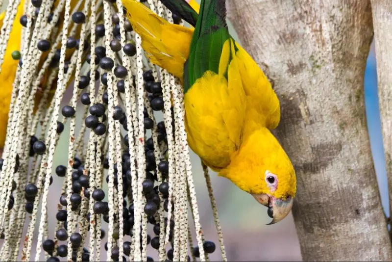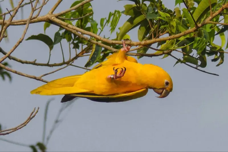 Segundo ele, o desenvolvimento comportamental em grupo é decisivo. “As ararajubas formam bandos familiares. Enquanto parte do grupo se alimenta, outros atuam como sentinelas. Na reprodução, até indivíduos que não estão criando ajudam a alimentar filhotes”, assegura o especialista.