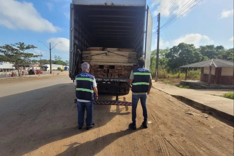 Fiscais de receitas estaduais da Secretaria de Estado da Fazenda (Sefa), lotados na Coordenação de Controle de Mercadorias em Trânsito do Gurupi, em Cacheira o Piriá, divisa com o Maranhão, no nordeste paraense, apreenderam, neste domingo (16), 20 metros cúbicos de carga de madeira serrada em portais e portas, no valor de R$ 53.320,00.