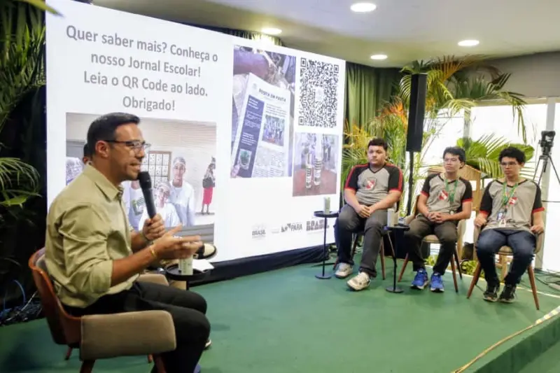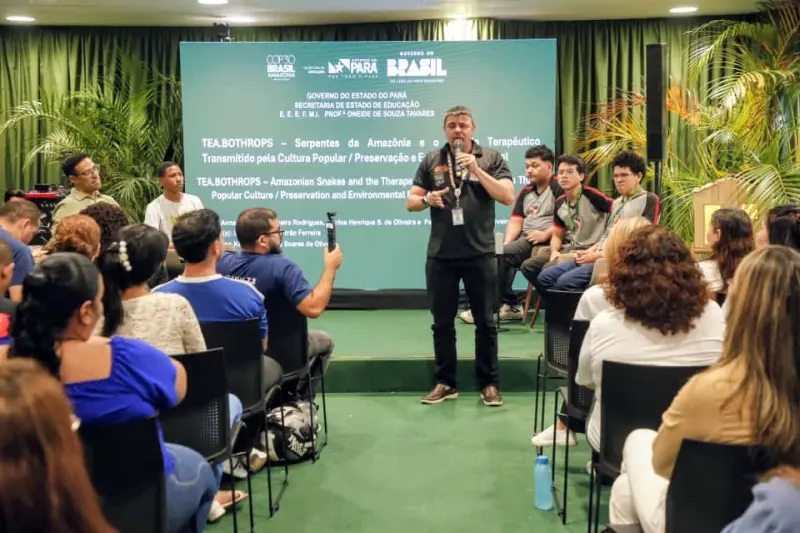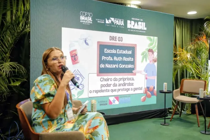 A Secretaria de Estado de Educação (Seduc) apresentou, nesta segunda-feira (17), o painel com o tema “Amazônia que inspira: Iniciação Científica na Floresta", no Pavilhão Pará, na Green Zone da COP30. A iniciativa compõe a Política de Educação Ambiental do Governo do Pará que, desde 2024, implementou o componente curricular obrigatório de Educação Ambiental, Sustentabilidade e Clima em todas as etapas do ensino na rede pública.