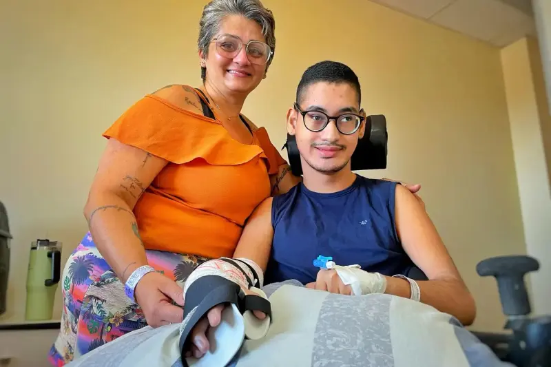Lucas Rafael, 19 anos, passou por uma cirurgia delicada de correção no punho. A mãe do jovem, Alexandra Nobre, 44 anos, contou sobre a transformação após o procedimento. “Ele sentia dor, e agora melhorou, inclusive na parte estética, que o incomodava muito por ter o punho completamente envergado. Com o início da reabilitação, tenho certeza que ele vai conquistar mais independência”, afirmou.