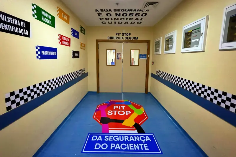 Como parte dessas ações, há ainda o projeto “Pit Stop da Cirurgia Segura”, que se inspira nos boxes de competições automobilísticas, onde são feitas as paradas técnicas para verificação das condições dos veículos. No contexto hospitalar, essa “parada técnica” simboliza o momento em que o paciente realiza, junto à equipe multiprofissional, o checklist pré-operatório antes de seguir para o procedimento.