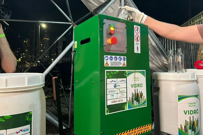 O equipamento transforma garrafas de vidro em cacos, facilitando a logística reversa e reduzindo o impacto ambiental. Na COP 30, o Moinho Formiga também cumpre papel educativo, sensibilizando o público para a importância da destinação correta de resíduos. O vidro triturado é armazenado em bombonas de 40 litros disponibilizadas pela entidade, que também se responsabiliza pelo transporte do material até cooperativas da Rede Central da Amazônia, onde serão encaminhados para a logística reversa.