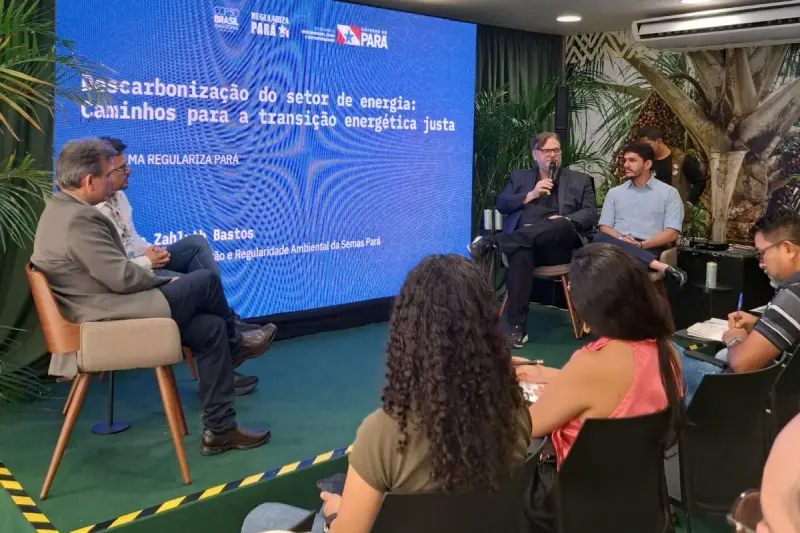 A Secretaria de Estado de Desenvolvimento Econômico, Mineração e Energia (Sedeme) promoveu, na tarde desta quarta-feira (19), no Pavilhão Pará, na Green Zone da COP30, o painel “Descarbonização do Setor de Energia: Caminhos para a Transição Energética Justa”. O evento integrou a agenda de debates da Secretaria, e teve como objetivo promover o diálogo entre representantes do setor industrial, governo, especialistas em energia, academia e sociedade civil.