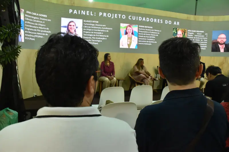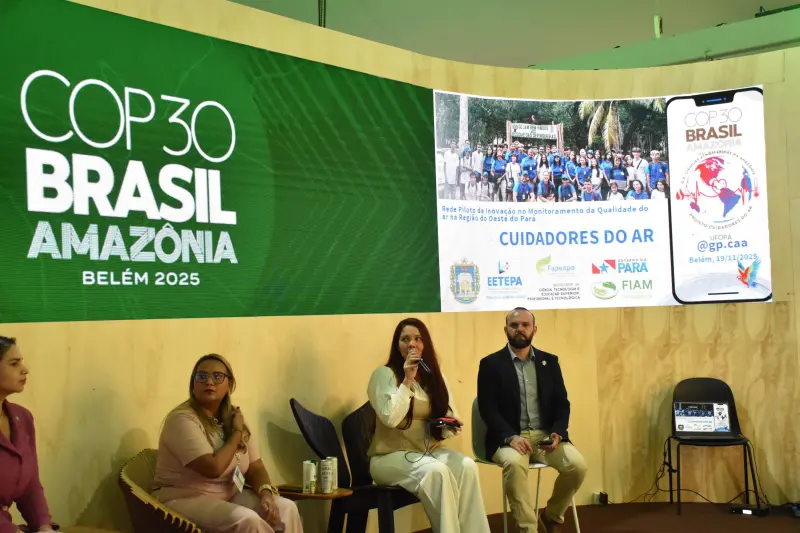 Nesta quarta-feira (19), a Escola de Ensino Técnico do Estado do Pará (EETEPA) de Santarém, em parceria com a Universidade Federal do Oeste do Pará (Ufopa), apresentou no estande da Assembleia Legislativa do Estado do Pará (Alepa), instalado na Green Zone da COP 30, um painel dedicado ao projeto “Cuidadores do Ar”.