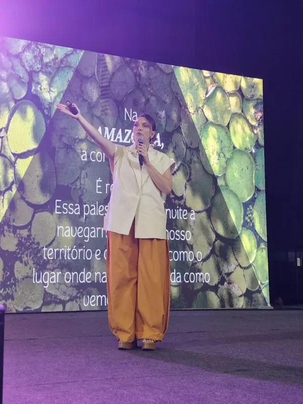 A agenda do dia iniciou com a palestra “Do local pro global: como valorizar o que é local e transformar em identidade”, conduzida por Erica Saraiva, que apresentou reflexões sobre como práticas, saberes e expressões amazônicas moldam a percepção do mundo e influenciam a construção de identidades.