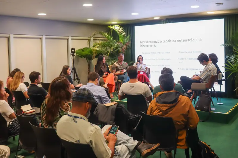 A Aceleradora de Negócios da Restauração foi apresentada como um hub de conexões que integra políticas públicas, empreendedores e investidores com o objetivo de impulsionar a restauração produtiva e fortalecer a bioeconomia paraense.