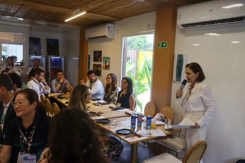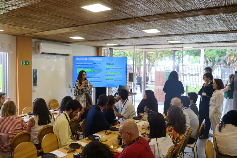Durante almoço realizado na EY House, espaço da Ernst & Young (EY) na COP30, o Conselho Empresarial Brasileiro para o Desenvolvimento Sustentável (CEBDS) promoveu o painel “Legado Empresarial COP30: Bioeconomia”. Representando o Governo do Pará, a secretária adjunta de Bioeconomia da Semas, Camille Bemerguy, apresentou a trajetória do Estado na consolidação de um modelo econômico sustentável e próspero, centrado na floresta.