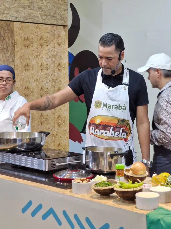 O terceiro a assumir a Cozinha Show foi o chef Josué Richardson, de Marabá, que apresentou o clássico "tucunaré de Marabá", homenageando um dos símbolos da gastronomia local. Ele explicou que o peixe — encontrado nos rios Tocantins e Araguaia — faz parte do cotidiano das famílias marabaenses. “É o tipo de prato que você come no domingo. Trazer o tucunaré é trazer a cultura e o nosso povo para cá”, disse. Para ele, levar o prato a um evento que integra a programação da COP30 reforçou uma mensagem de consciência ambiental. “A COP traz conscientização sobre fauna, flora, nossas bacias hidrográficas e sobre a preservação do nosso peixe. É apreciar com responsabilidade, no período certo, para garantir um futuro melhor para os nossos”, destacou.