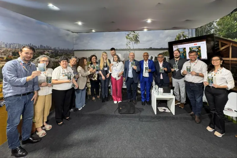 O reitor da Uepa, Clay Chagas, representou a Universidade na Blue Zone, área restrita da COP30, no lançamento do livro “Contribuições da Comunidade Científica e Tecnológica da Amazônia para Agenda de Ação – Foco CT&I”, com a presença de Gilmar Pereira da Silva (reitor da UFPA), Olavo Noleto (Conselho de Desenvolvimento Econômico Social Sustentável – CDESS/ Presidência da República), Raimunda Monteiro (CDESS/ Presidência da República), Ima Vieira (MPEG/Finep – Conselho Científico da COP30), da reitora pró tempore Janae Gonçalves (Ufra), Dorival da Costa (subsecretário de Ciência e Tecnologia para a Amazônia/MCTI) e Txai Surui (liderança indígena e Conselheira CDESS).