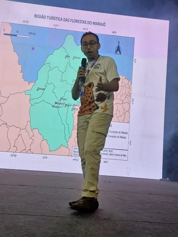 Na sequência, o secretário de Meio Ambiente de Breves, Íkaro Gama, apresentou o projeto Do Lixo ao Lustre e o Parque Biocultura, voltados à gestão de resíduos e à recuperação de áreas sensíveis do Marajó. Ele defendeu a importância da participação amazônica no debate climático. “A gente precisa fazer parte desse diálogo. Somos nós que sentimos, que vivemos na floresta e enfrentamos os desafios. Esse espaço é essencial para mostrar nossas práticas e deixar um legado real para os municípios”, destacou.